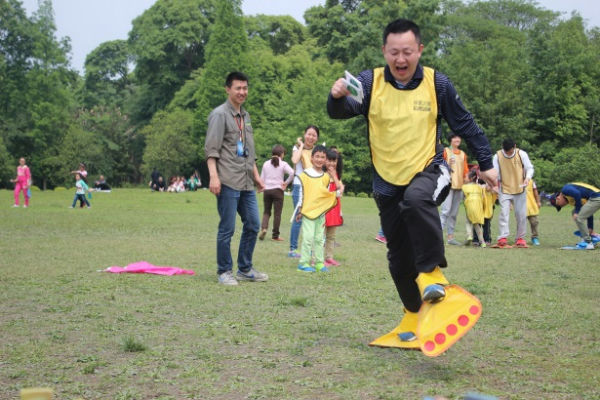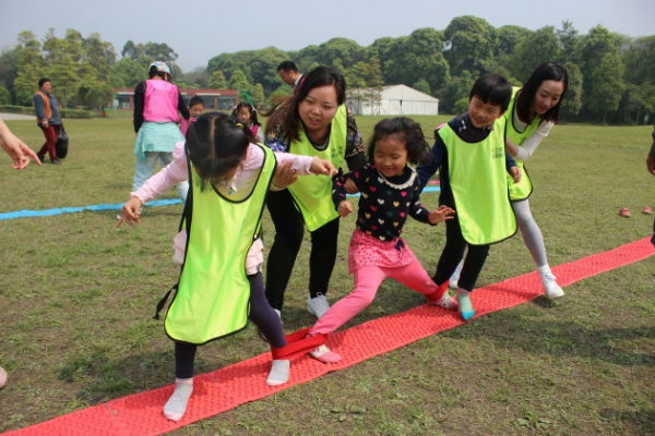 接着开始的是“疯狂指压板”,这个比赛既考验爸爸妈妈们的体力和耐力,也考验孩子们的合作精神。在往返三个回合的接力中,既有个人明星的速度之争,也有父与子的亲情合作,还有孩子们的同舟共济,大家拼得真是有苦也有甜!