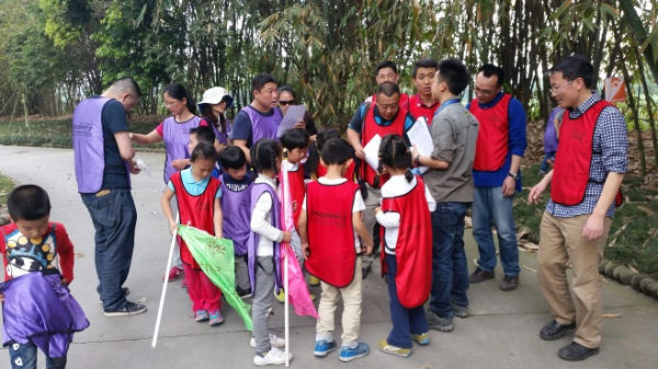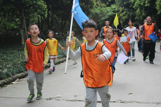 一队队五颜六色的人马浩浩荡荡出发了,这些热闹欢腾的队伍吸引了沿路所有人的目光:“看,那些爸爸妈妈们,比孩子们还激动呢!”是的,这时的爸爸妈妈和孩子们已经浑然忘我地沉浸在寻宝的角色之中,他们认真地凑在一起钻研着地图,大步如飞地冲向一个个目的地,仔细地查看着每一片树叶、每一根树枝、每一从灌木,寻找着地图上的一个个宝藏……