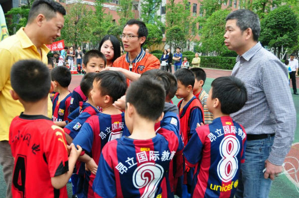 经过激烈的小组循环赛,2015泡小天府学生足球赛进入更加激烈的8进4淘汰赛。赛前2.6班教练和队员们一起认真研究战术分析打法,班级啦啦队、家长啦啦队场外加油鼓劲。