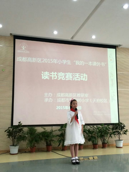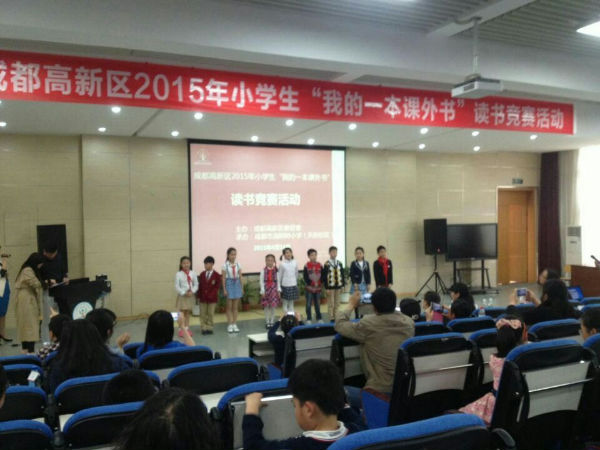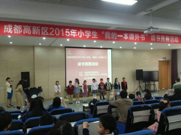 2015年4月14日下午,成都市高新区小学生“我的一本课外书“读书活动中段组竞赛在我校举行。