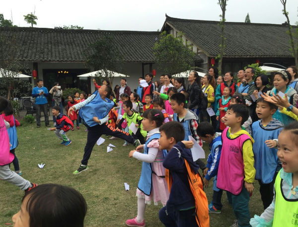 活动分成四个小组开展,小伙伴们选出了四位队长作为领队,绿精灵、飞鹰等各具特色的队名都是由小泡泡的智囊团提出来的,并提出响亮的口号,由队长做现场介绍,引来现场一片片热烈的鼓掌声。一双双小手紧紧握在一起!是的,我们是一个团队,并肩作战的战友,团队的荣誉及责任在我们每个人肩上!