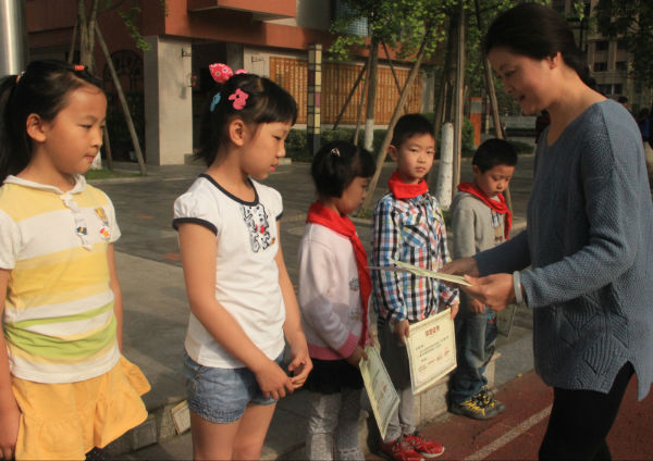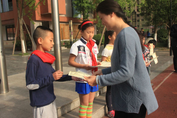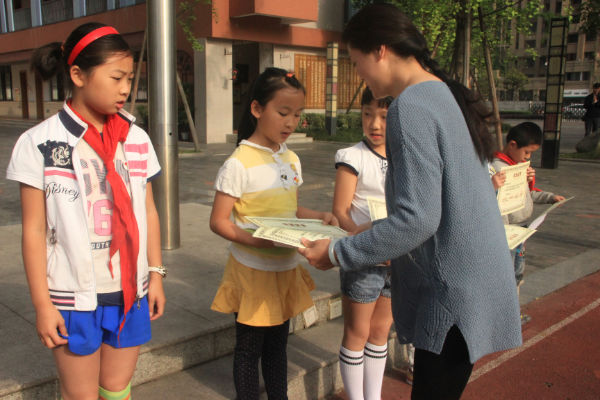 4月20日上午,文化交流中心李世涛老师在国旗下主持了本次颁奖仪式,并邀请学生家长发展中心曹娟主任为小泡泡们颁发获奖证书。