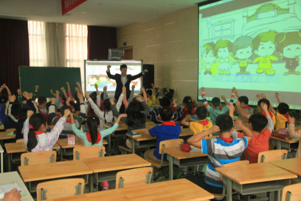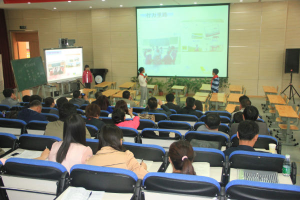 接着,由三年级六班周强老师和四年级五班的同学在阶梯教室为来访嘉宾呈现了一节题为《有话好好说》的示范课,周强老师从轻松愉悦的游戏入手,顺利进入了课堂,在课堂中,周老师通过讲故事、模拟情景、师生互动、学生与台下嘉宾互动的方式,让课堂的形式呈现更多的趣味性,也让传统的课堂展示出多边互动、研究的氛围,在更多的互动与参与中,周老师结束了自己的教学,获得嘉宾阵阵掌声。
