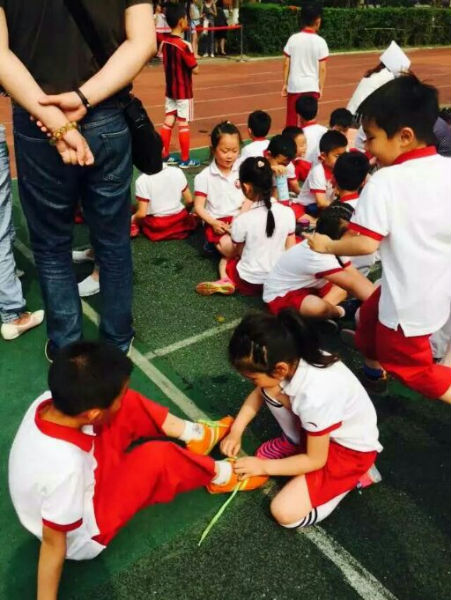 看!运动场上,小健儿稚嫩的肌肉蕴含着爆发的力量,坚定的目光中充满了自信。60米,100米,跳绳,跳远,广播操各项比赛热火朝天。同学们为选手加油呐喊,不少泡爸泡妈也来到现场振臂助威。赛场上出现了很多感人的画面:这里,即将上场比赛的小选手的鞋带松了,马上有同学蹲下帮忙系好。那里,一群小泡泡围成一圈,击掌鼓励打气......友谊的种子在一六班49位小泡泡的心里生根发芽。
