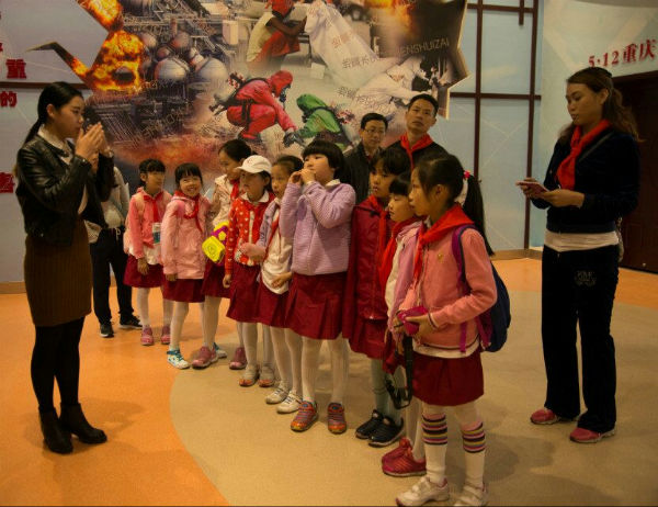 美好的春光岂能辜负?2015年4月19日一早我们三辆大巴浩浩荡荡前往崇州,到这里感受中国目前最大的地震科普馆,学习各类地震逃生自救等知识。好开心,45个孩子一个都不少,班主任徐老师、副班主任沈老师、美术李老师第一次和我们一起出来游玩,我们是相亲相爱的一家人,孩子们别提多开心了!感谢成都防震减灾科普教育基地,给予我们的特别体验。该场馆目前没有对外开放,属于内部测试阶段,精彩的4D地震体验影片将在正式开馆后与公众见面。预计开馆时间在今年的5.12。在这里孩子们了解了地震知识,还略微体验了地震时的感受,以及逃生技能和自救技能。