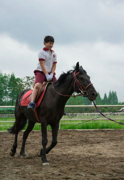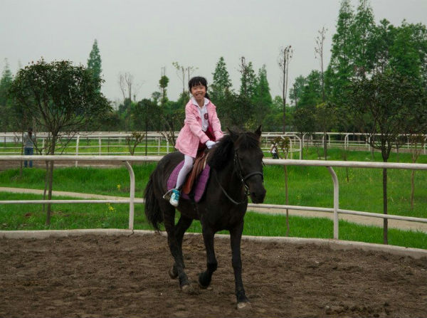 接下来就到了最让孩子激动的地方了,我们来到了崇州青城马术俱乐部,我们又幸运成为了第一批团队接待,期间发生了一个小插曲,一开始,一个美妈因为紧张,情绪传递到马,马瞬间受惊,幸好美妈紧紧抓牢缰绳,不过还是有点轻微跌落,把我们吓坏了。不过,马术真的是一项有感情有技巧的运动。在教练的指导下,我们坚持进行。收获了满满的成就感。孩子们最初由教练保护上马到独自骑行,对马的感情也在加深,下马时都忍不住抚摸马儿的脖子,对它致谢。感谢青城马业马总亲自挂帅的教练团队,很用心,也很有爱。大家累并愉快着,在这里大家学习了关于马的知识,还观看了马术表演,还割了马草,喂了马!如此近距离的很那么多纯血马、汗血宝马接触还真是头一回呢!一直到天快黑了我们才恋恋不舍的离开马场结束一天的行程回家了!
