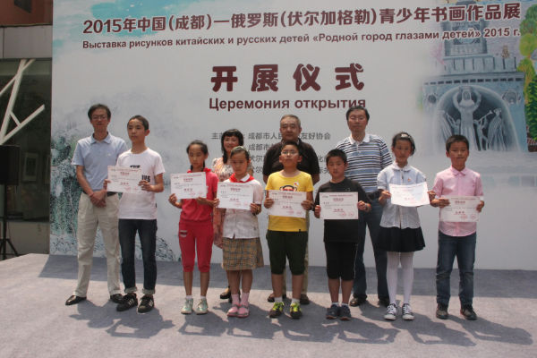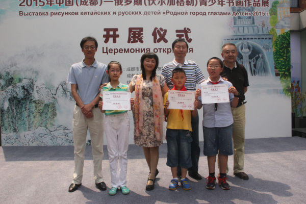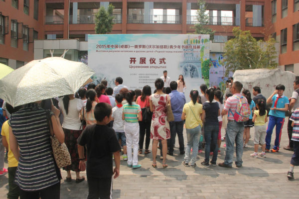 2015年5月7日,由成都市人民对外交流协会、成都市教育局、俄罗斯伏尔加格勒州政府文化部、伏尔加格勒市政府国际关系委员会主办,成都市泡桐树小学(天府校区)承办的“2015年中国(成都)-俄罗斯(伏尔加格勒)青少年书画作品展”在成都市泡桐树小学(天府校区)天府艺术中心正式开展,成都市人民对外友好协会秘书长赵玲女士、成都市教育局对外交流合作处徐海副处长、成都市外事侨务办公室亚非处万处长、成都市泡桐树小学(天府校区)芶鹏校长等领导嘉宾出席展览开展仪式,来自成都市教育局、外事办工作人员及相关学校的老师、获奖学生约100余人参加开展仪式,开展仪式由泡小天府校区周强老师、李瑶老师主持。