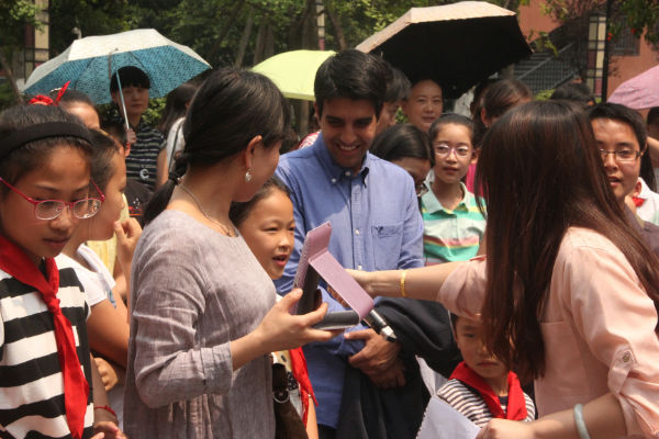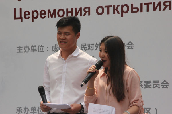 首先,周强老师代表学校向所有来宾致欢迎词,并向现场所有的领导、老师、同学介绍了本次活动的相关背景——2014年和2015年是中俄两国政府确定的“中俄青年友好交流年”,成都与友城伏尔加格勒联合举办此次主题为“我眼中的家乡”的青少年书画作品展,旨在鼓励和促进两市青少年绘画创作能力,培养审美意识,加强两市文化教育交流,促进中俄两国青年的相互交流和往来。本次书画作品展中俄双方各50幅,共计100幅。