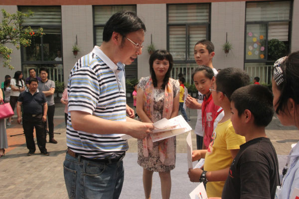 在赵玲秘书长致辞结束后,由成都市外事侨务办公室亚非处万处长宣布获奖名单,由成都市人民对外友好协会秘书长赵玲女士、成都市教育局对外交流合作处徐海副处长、成都市泡桐树小学(天府校区)芶鹏校长为获奖学生颁发获奖证书并合影留念。