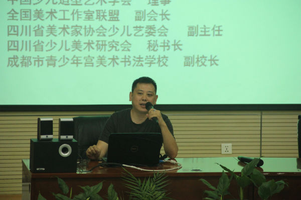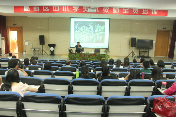 2015年5月7日(星期四)上午,“成都高新区美术学科全员培训会”在成都市泡桐树小学天府校区学术中心召开,来自全区中小学美术教师约70人参会,培训会由成都高新区美术教研员陈冠夫老师主持,特邀儿童美术教育专家闫华老师作为本次主讲嘉宾。