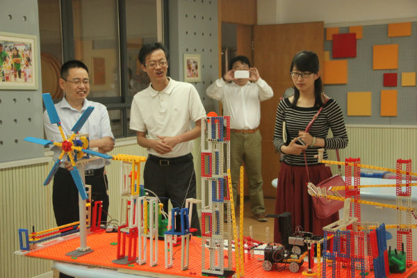 5月8日上午,国家教育部教育管理信息中心张鹏高处长、王佳老师,华东师范大学教育学部吴旻瑜博士、陈超老师,省、市、区负责信息化的领导一行,来我校进行教育信息化工作调研。 首先学校芶鹏校长带领来访嘉宾参观了我们的学校,在参观过程中,芶校长为嘉宾们介绍了学校的办学理念、校园文化建设、课程建设、科技艺术活动在学校的开展情况、信息技术在学校管理中的应用等。