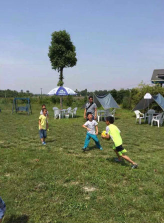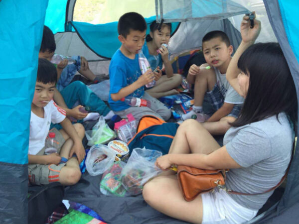 帐篷里向老师与孩子欢声笑语打成一片,帐篷外游戏嬉戏、打橄榄球好欢快!