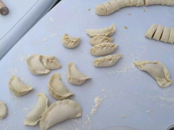 我们的亲子晚餐开始啦,爸爸妈妈大显身手!和面、擀皮、和馅,包饺子,一样不落.小朋友也参与的哦,你看那各种样式的饺子,食欲大增!
