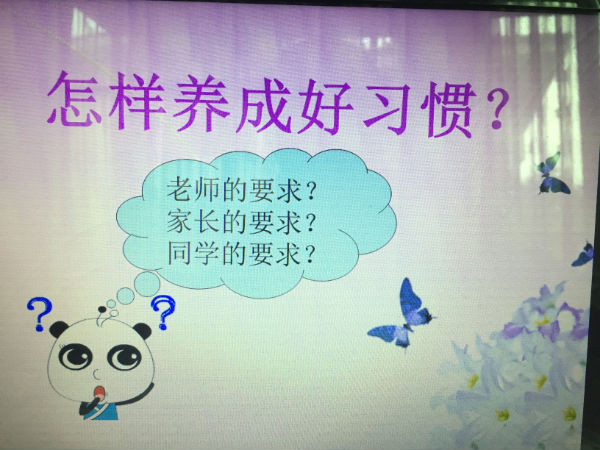 班会开始,班妈盼盼要求孩子们从生活、学习、做人三个方面谈谈哪些是好习惯,引用培根的名言“习惯真是一种顽强而巨大的力量,它可以主宰人的一生。”让孩子们深刻认识到好习惯的重要性,然后一起探讨分享怎样养成这些好习惯。