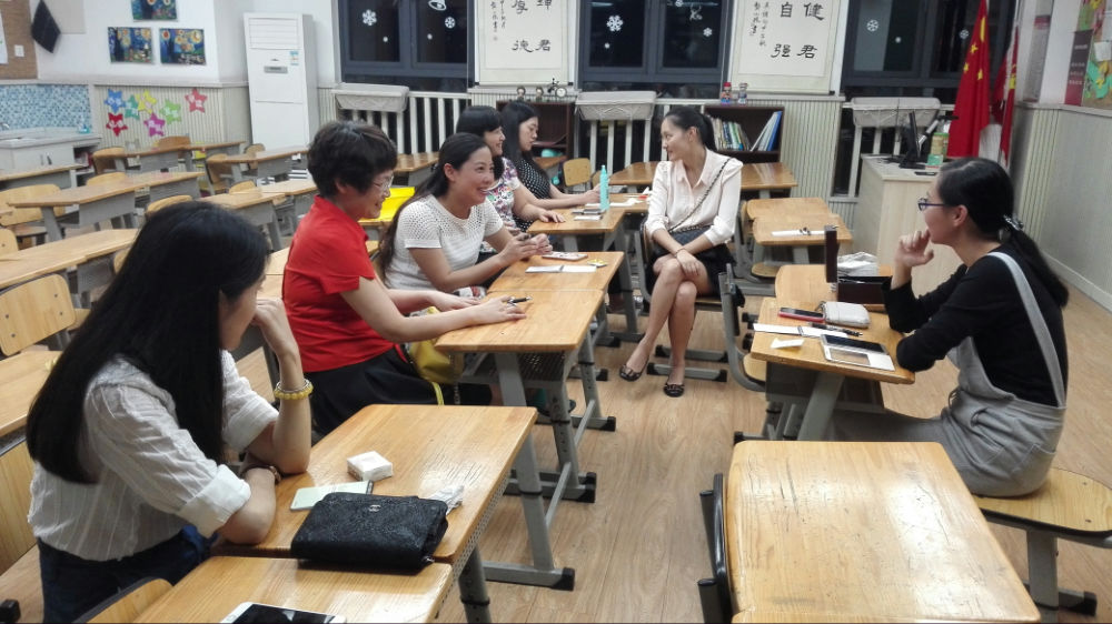 “我来通知全班各位家长朋友”、“明天就去购买需要更换的清洁用品”、“这样设计表格如何?”、“班级文化是以中国文化为主题,还是以环保理念为主题?”……..7位泡妈们按照张盼老师提出的一条条思路和要求讨论,商议协同配合,努力做好新学季班级服务工作。