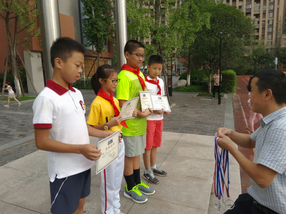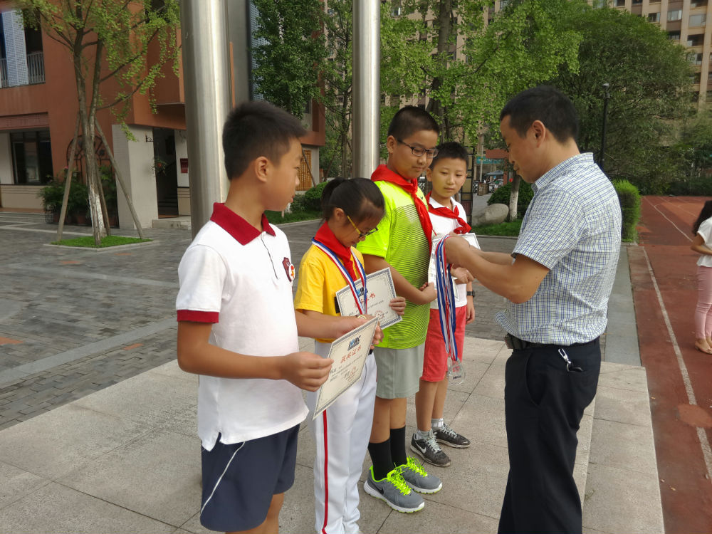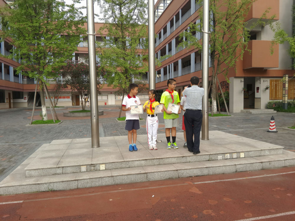 新学期开始了,我们的小英雄们也回归校园,在今天的升旗仪式上,唐校长为大家颁发了奖牌以及获奖证书,并让全校的同学都认识了这四位同学!同时,也衷心祝福他们在以后的比赛中取得更加优异的成绩!