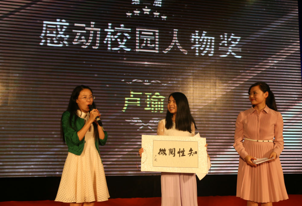 每一个老师都是一段故事,每一个故事的背后都有难忘的瞬间;每一个老师都是一处风景,每一处风景都有赞美的理由。本次校园感动人物评选活动由学校工会牵头,经过前期全校老师的网络投票,结合学校实际情况,感动校园人物评选组委会最终推选出两个学校一共13位获奖老师,他们分别是唐治国、余世凤、冯慧、张义成、赵靖、杨眉、卢瑜、周晓霞、毛学文、刘伽齐、黄际、王清、董崇龙,其中唐治国老师和毛学文老师是连续第二年当选感动人物。组委会的老师们专门为每一个获奖的老师撰写颁奖词,书写颁奖词。从每位老师的颁奖词中,从每位获奖老师的感言当中,现场所有的老师们都为他们的奉献精神所打动,同时也都真诚的为他们送来掌声和祝福。