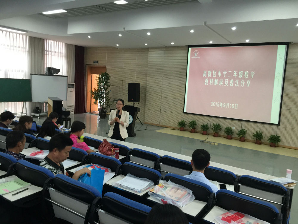 2015年9月16日下午,在成都市泡桐树小学(天府校区)举行了高新区二年数学教材分析和教法分享教研活动。本次活动由高新区数学教研员游琼英老师主持,我校的唐治国、欧小丽、李亮三位老师主讲。
