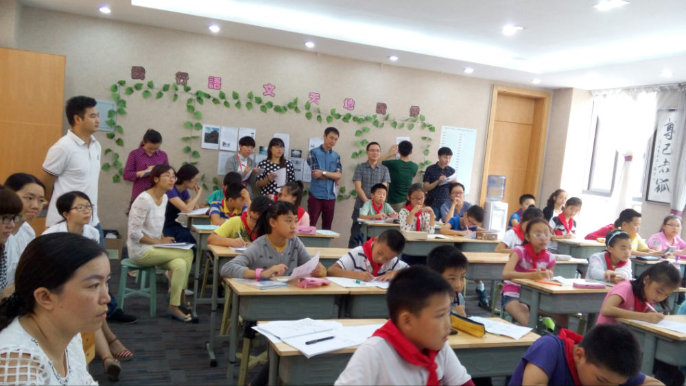 9月16日第三节五年级廖敏在打响了诊断课的打一枪。廖老师展示的是一节数学讲评课。总所周知,这种课型是最难上,上不好就是炒盛饭,学生无趣、教师无味。廖老师的课堂,课前学生独立完成习题,课上学生自主提出自己解决不了的问题,然后在小组内求教,最后小组解决不了的问题,向全班求教。这样的评讲课不同之处在于,以前的评讲课是教师求着学生听,廖老师的评讲课是学生“求”着大家讲,主动地暴露问题,这才是主动学习。但是,廖老师的课中学生也有纠缠于一些细枝末节的问题。观课者认为讲评课可以做的粗放一些,重点是放在易错、中难度的问题上。