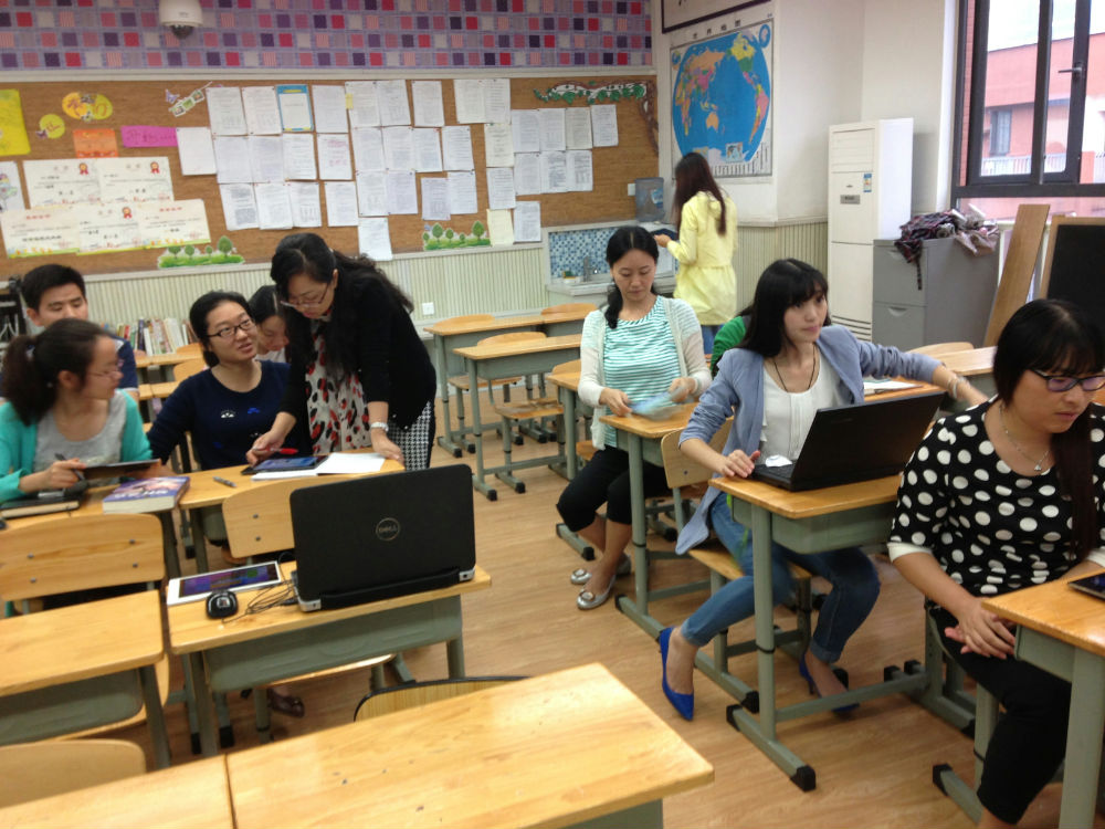 9月21日下午,智慧课堂的工程师卢娟老师到我校进行技术培训,“数字化一对一”课题组和项目组的老师主动调课后参与讲座,老师们学得非常认真,特别是欧小丽老师和唐治国老师,边听边提出自己的困惑,与培训老师不断互动,在思维不断地碰撞中掌握了云平台的操作技术。
