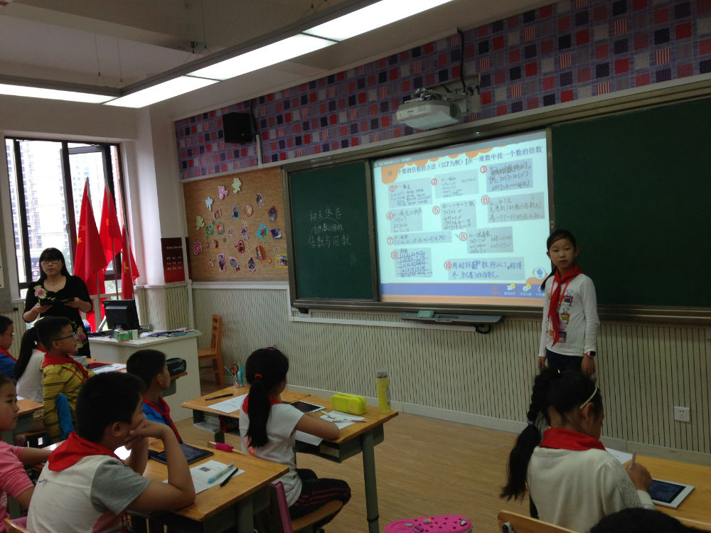 9月22日下午,欧小丽老师在本学期“数字化一对一”课堂教学中率先起跑。下午第二节,五年级一班教室座无虚席,老师们怀着迫切的心情来看看数字化课堂究竟是什么样的。欧老师沉着冷静,从容不迫,自孩子的问题引入课堂,以孩子的困惑贯穿全课,在孩子的主持中推进课堂。欧老师引导孩子们不断提出问题、解决问题、反思问题。本堂课中,技术发挥了不可替代的作用:讨论问题时随机分组,孩子分享时即时互动,点名提问时更加公平,让课堂变得更加有效、高效、人文。