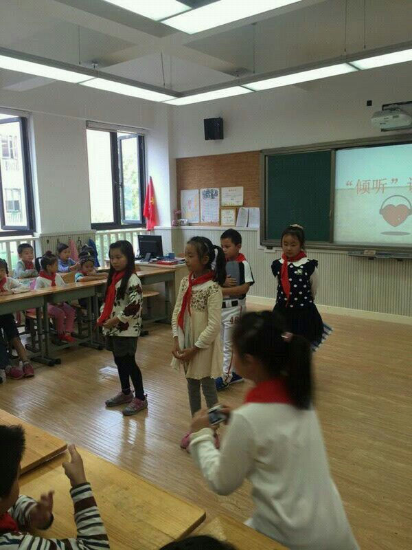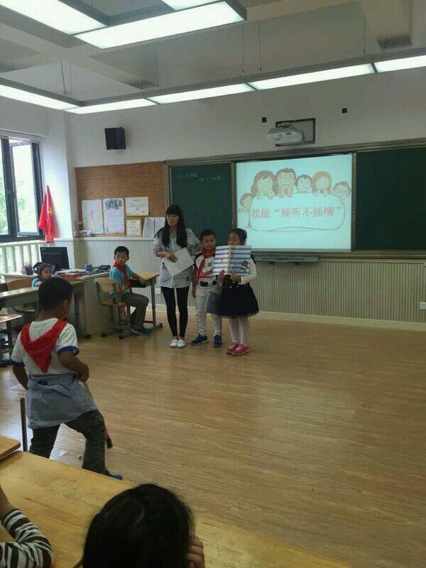 从本学期开始,二、七班的班队活动的形式有所改变。从以前单纯的老师在讲台上说教,改为了由小泡泡们主动融入班队活动之中。从主持人到表演嘉宾全都由小泡泡们自己担任。在9月25日的活动中,首先大家通过“我听你说”这个有趣的游戏深刻体会到了只有认真倾听才能够又快速又准确的理解别人所表达出的意思;然后通过对“聪”字的拆分让泡泡们懂得了聪明的孩子首先是一个善于倾听的孩子,其次聪明的孩子会动口动手和用心。接下来“小演员们”还表演了最佳听众情景剧。小泡泡们通过在惟妙惟肖的表演和讨论中,得到了“四心”小窍门:专心:听清楚每一句话;耐心:不插嘴,别人说完再发表意见;虚心:不自满,能接受别人意见;用心:有自己的思考,有选择的接受别人的意见。最后,大家运用刚才学习到的倾听方法去听一位小泡泡讲故事,并有小观察员严格监督小泡泡们的表现。在检测听讲质量时,只要带上“四心”听故事的小泡泡们都回答对了老师提出的问题,还得到了奖品。这证明了好的倾听习惯是可以通过大家的努力来培养和实现的。通过此次班队活动小泡泡们意识到了认真倾听不插嘴的重要性,在寓教于乐的活动中,遵守纪律的意识得到了加强,自我管理的能力得到了提升!