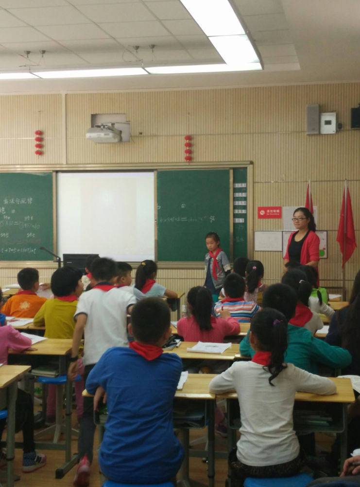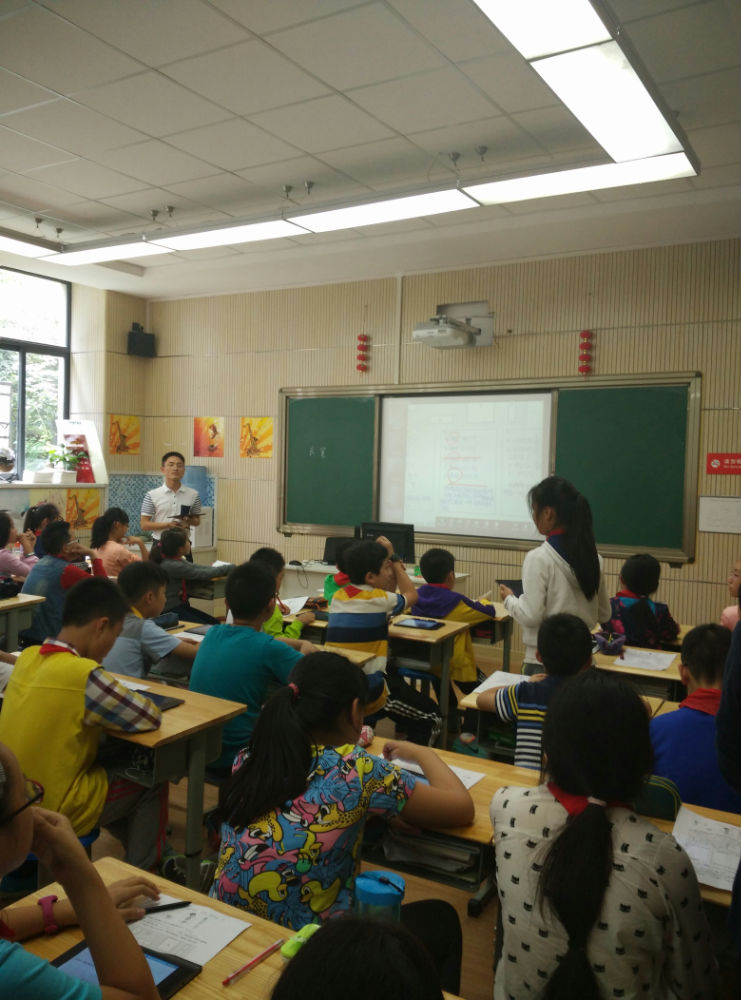 本次的实训基地活动为课例研讨。由我校数学组两位青年新锐为大家展示了两节课。首先是唐治国老师教学的《生活中的比》。他采用了数字一对一的先进技术,利用“智慧云课堂”进行教学。唐老师首先梳理了孩子们的问题,通过投票选择出孩子们最想解决的问题。从学生的“真问题”出发来进行探究。抢答、投票、拍照上传、在平板上作业……没有纸笔,不着粉尘,孩子们在云课堂中既收获了数学知识,又拓宽了现代信息技术视野!李颖文老师上的是《乘法分配律》一课。李老师利用学历单让孩子们进行了课前学习和思考。课上集中展示了孩子们的方法。在小组讨论和全班分享中,孩子们对几种方法进行了沟通,从而理解乘法分配律的规律。整堂课,问题由孩子提出,方法由孩子寻找,结论由孩子总结,充分展现了孩子们的精彩。