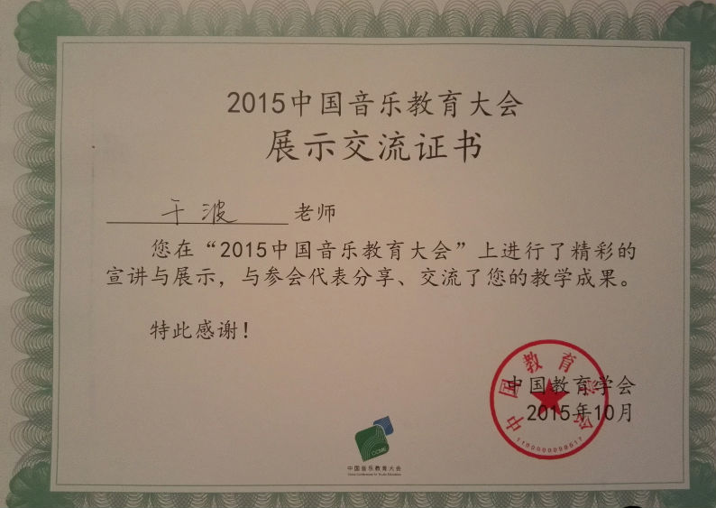 2015年中国音乐教育大会于2015年10月12—16日在上海进行,泡桐树小学(天府校区)派出音乐组余世凤老师参加会议。这次大会主题:传承,发展,创新。