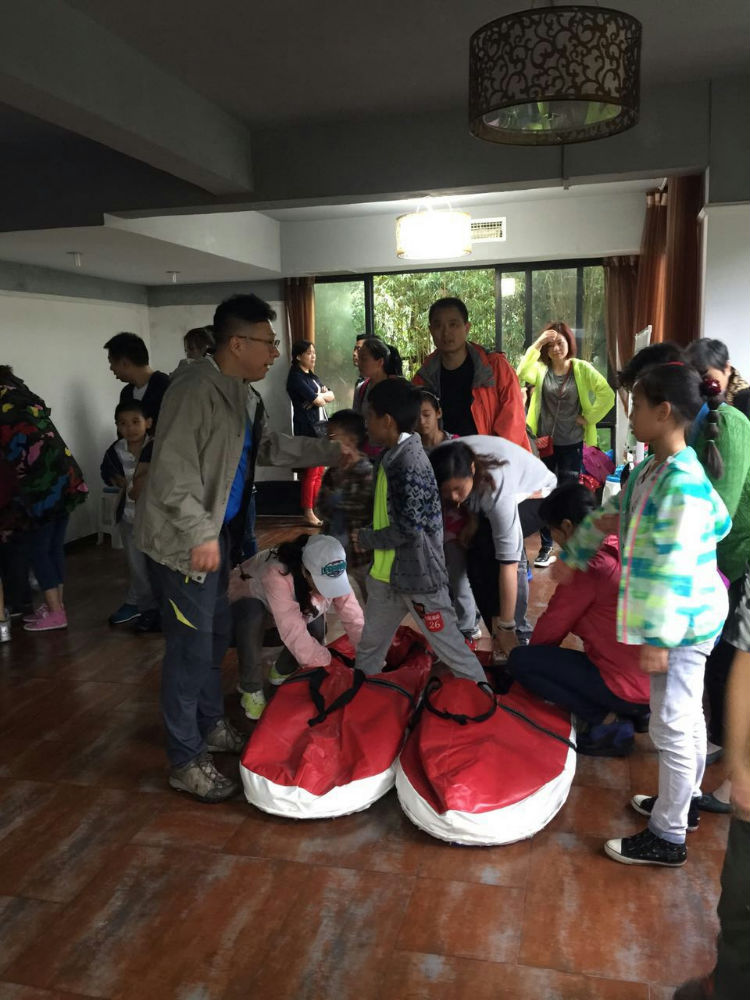 上午8时,秋游队伍便在家长的带领下向高原河谷进发。然而,天公偏偏不作美,等我们到达目的地时,已是大雨淋漓。正当大家都倍感灰心之时,家委会兴奋的通知说:我们与景区沟通好了,可以在室内组织相应的互动活动。很快,在全体家长及同学们的努力下,一块室内运动场地便展现在同学们面前。随后在家长的带领下,同学们把刚下车时的郁闷心情一扫而空,尽情的参与到“解手链”、“大鞋子”、“室内CS”等活动中去,最后在同学们的一片欢乐笑声中,结束了本次别具一格的“户外实践活动”。