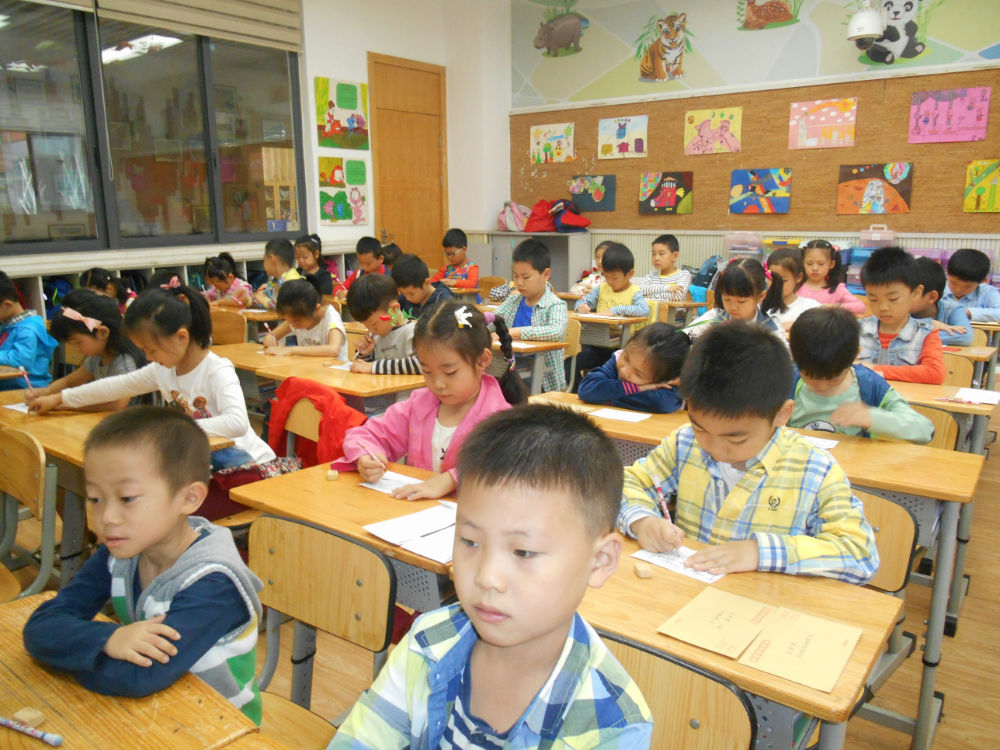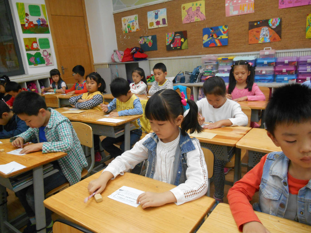 比赛一开始,孩子们马上就像带枪的战士一样,在他们的战场-----一方小小的田格纸上挥舞着笔头,在田字格中规范地书写爸爸妈妈给予自己的骄傲。你瞧,那一个个漂亮的坐姿!你瞧,那一双双有力的小手!你瞧,那一个个专注的眼神!似乎在不停地提醒自己:撇出尖,捺出脚......