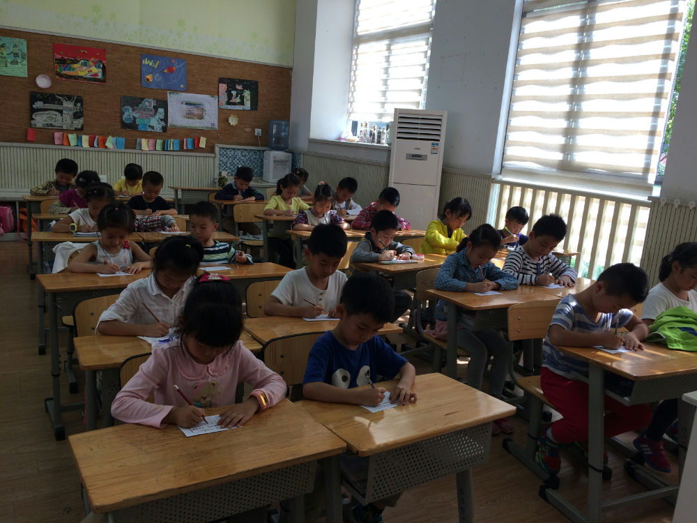 2015年10月20日早自习,成都市泡桐树小学(天府校区)一年级小泡泡们在各自班上进行着”我的名字最漂亮“书写比赛。一年级四班有三个小泡泡请迟到假,为了让每一个孩子都能感受到比赛的氛围,全班孩子和龙老师一起决定:比赛延期在中午举行。