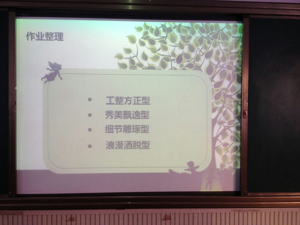 本学期继续开展教师粉笔字培训活动,将任务与集中交流相结合,利用网络后台收集信息,详尽便利;利用放学后的业余时间,现场集中学习交流对作业进行梳理总结。老师们非常认真,不断的进行着对粉笔字的改进完善,力求将最好的教学质量呈现给学生。老师们孜孜不倦、精益求精的优秀品质着实令人感动。