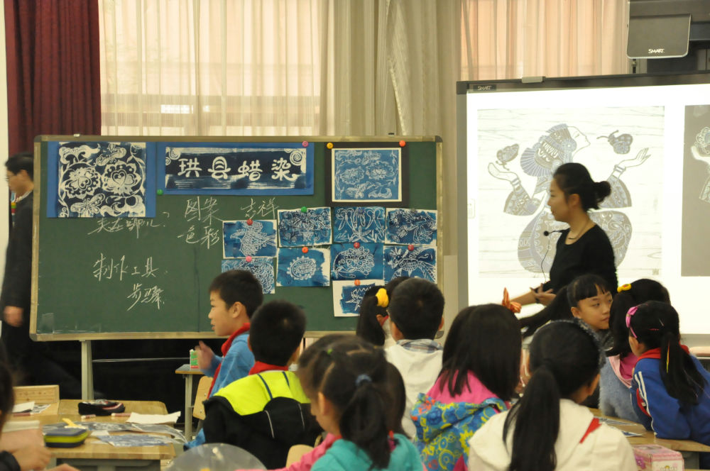 此次教学研讨活动,围绕美术“欣赏.评述”课型展开。首先,第一节课是我校美术教师李婷婷带来的五年级上《珙县蜡染》,其精心的教学设计、精准的教学语言、精美的教学资源,对美术课堂教学的调控能力等得到了与会教师、专家的高度肯定与评价。