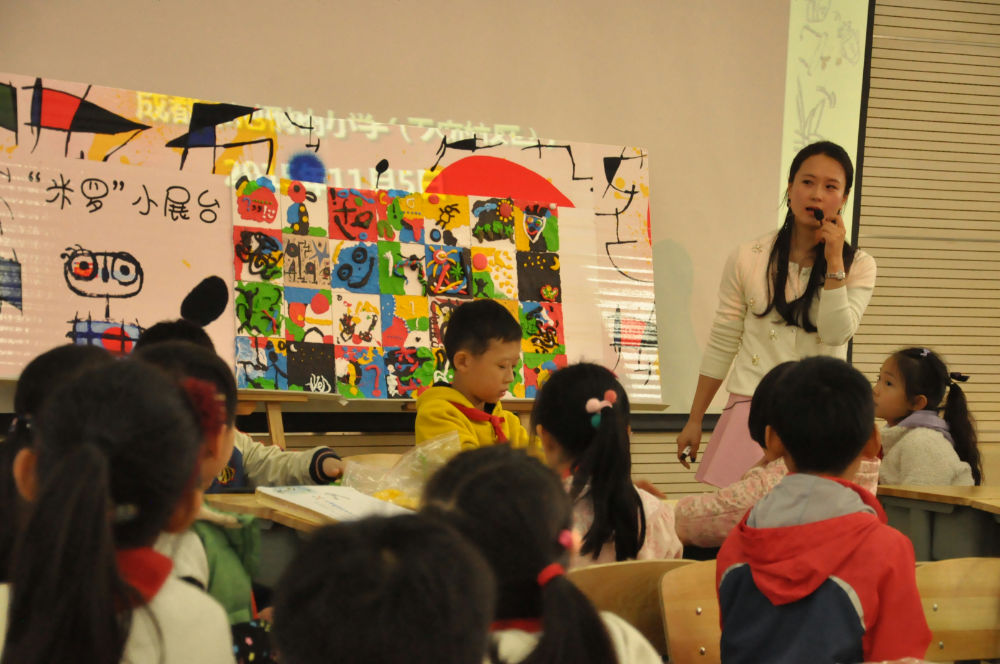 此外,高新区西芯小学的邓娜也给大家带来了一堂别开生面的三年级上册《走进米罗的世界》,创意的教学设计和充分尊重学生为主体,以学生探究、体验为主,让整堂美术课充满了想象与美感。而来自成都市七中附属实验小学的文老师,也为参会美术教师带来了意外地惊喜。她选择了刚进校的一年级萌娃娃们,一起走进美术欣赏.评述课《小伙伴》,考虑到实际学情,文老师把“评述”部分改成了“讲述”,带着娃娃一起从观察、感受、感知,孩子们精彩地回答也博得了现场老师们的阵阵掌声。