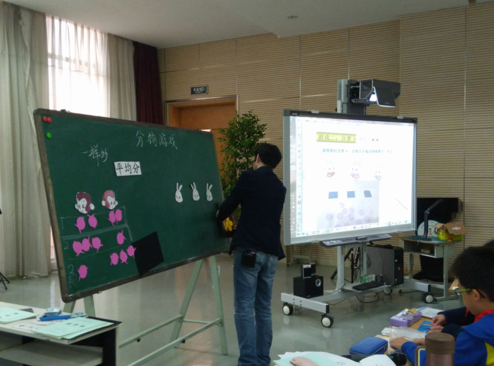 本次研讨活动主题是“信息技术环境下的分享式教学”,课例是我校二年级王哲老师代表二年级组展示的《分物游戏》,新科小学陈颖老师展示《认识厘米》。泡桐树小学(天府校区)唐治国老师为全区二年级数学教师教授微课的制作方法。在观课及研讨中老师们围绕“如何让学生发现问题?”、“鼓励学生的艺术”“如何让孩子更充分的学会交流与合作?”三个方面来进行,课后游琼英老师就课中这三方面的设计作了说明。参加研讨老师们进行交流研讨时,气氛活跃,老师们就教学中教材的处理、教学设计,课堂上观察到的学生学习状态、活动经验积累和运用的设计与成效、提问的设计等作了较深入地探讨,对很多问题达成了共识:肯定了教材的处理有利于促进学生更好地掌握重难点、课堂中呈现的多种活动形式有利于学生多感官、多角度理解内容、学生数学活动经验的设计与教学将促进孩子后续学习以及注重学生学习中的数学思考,课堂中呈现了自然和谐的师生氛围,不仅关注数学教学,同时也关注数学教育,使学生健康全面的成长。