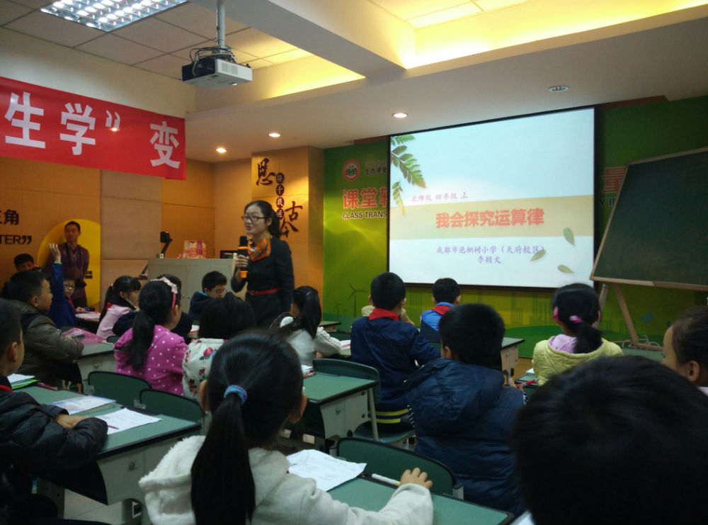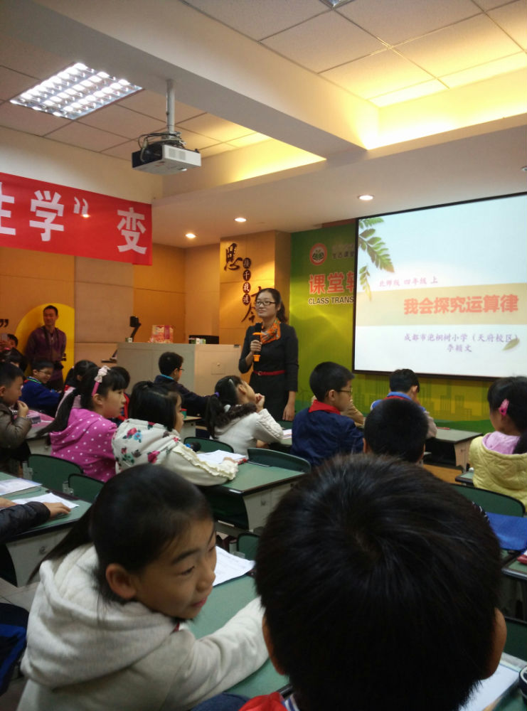 11月11日,数学组全体教师到红专西路小学参加了四川省“第二届基于课堂转型下的“生态课堂”现场教学观摩研讨会。我校青年教师李颖文执教了《乘法分配律》一课,受到与会专家和老师的一致好评。