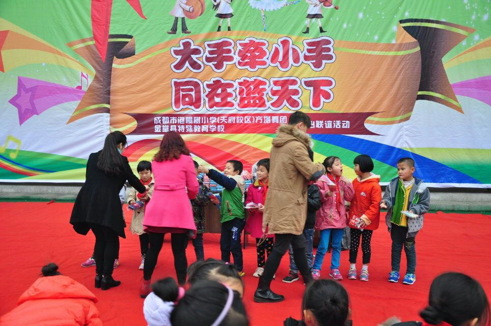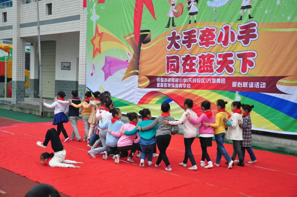 2015年11月13日,“水泡泡舞团”前往金堂县特殊教育学校开展“小手牵小手同在蓝天下”主题活动。