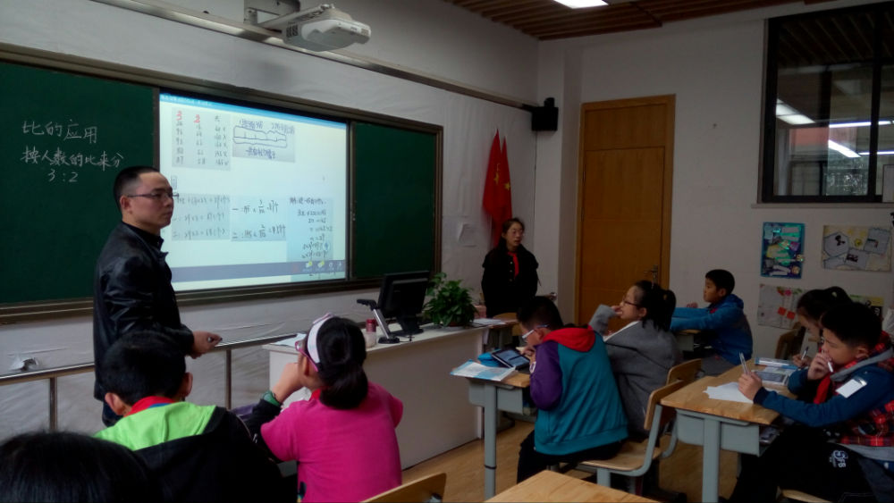11月18日下午,四川省电教馆教研室主任袁红莅临我校指导数学组省级课题“数字化一对一环境下的分享式教学”的阶段成果提炼活动。当时,正值数学组付亮老师执教参加学校“数字一对一环境下分享式教学大展台”活动,于是袁红主任首先走进了付亮老师的课堂。