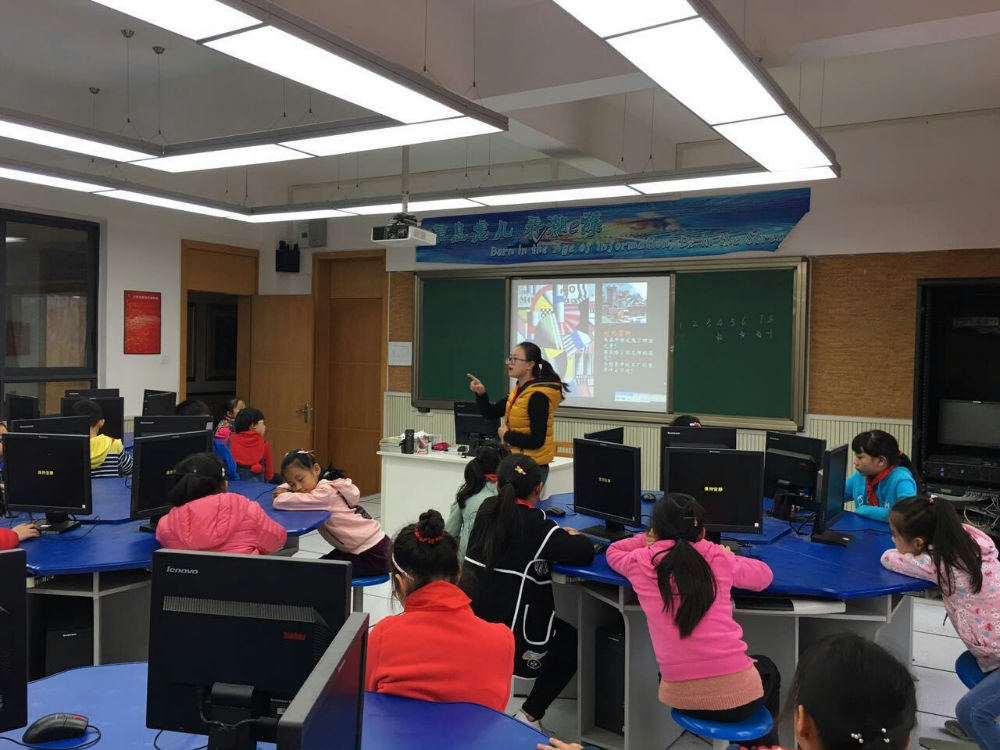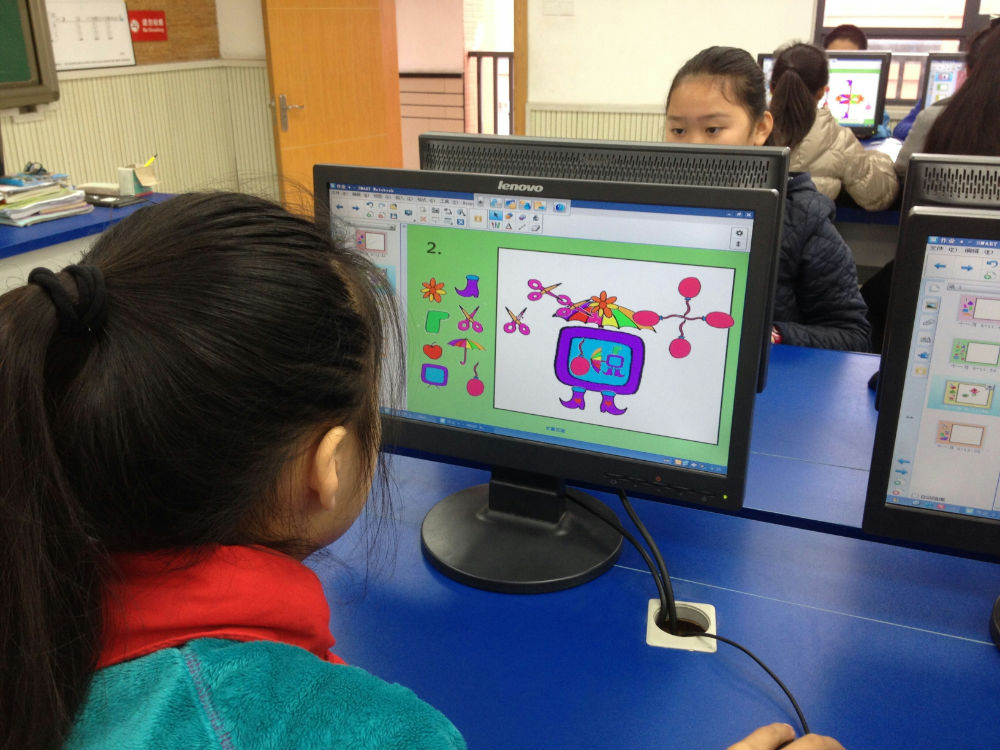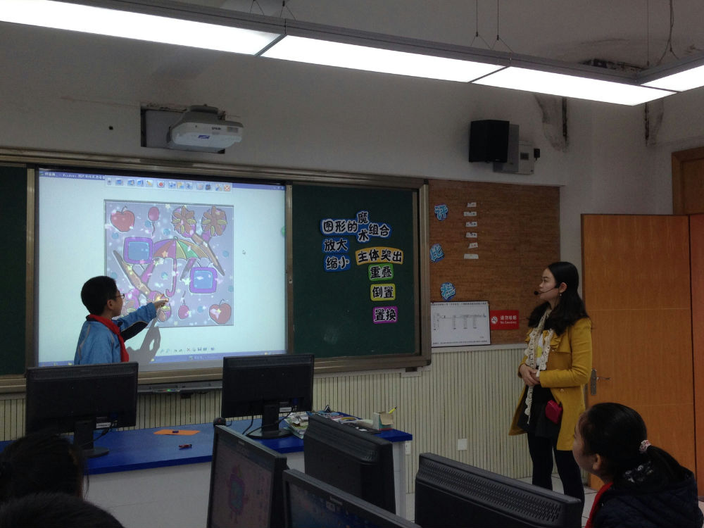 2015年11月20日星期五,泡桐树小学天府校区就开展了一堂别开生面的美术课,这堂美术课,孩子们并没有拿起画笔涂涂画画,也没有动手做手工,他们在干什么呢?每个孩子都坐在计算机前面,拿起鼠标在电脑上对一些图形进行拼摆、组合。原来孩子们是在“一对一”的教学环境中,进行美术的创作。