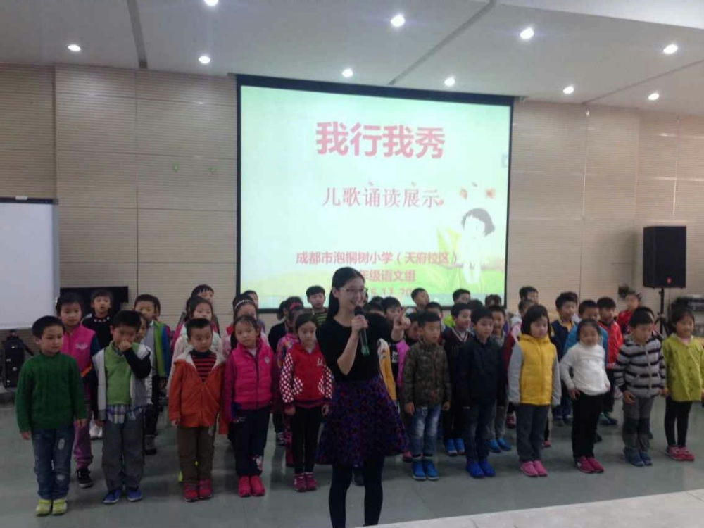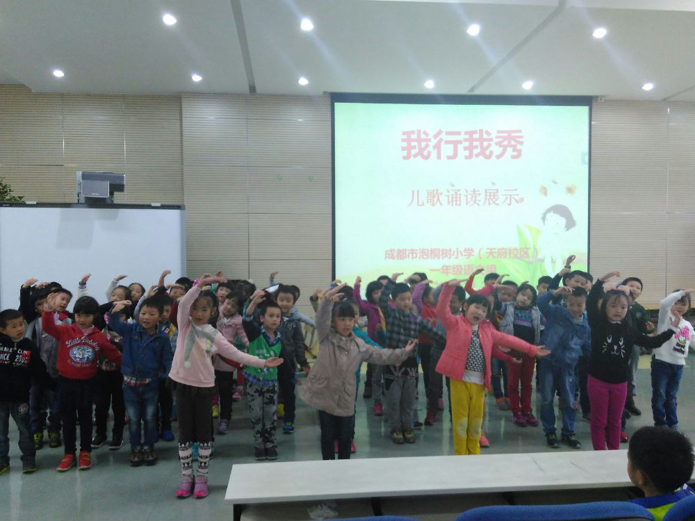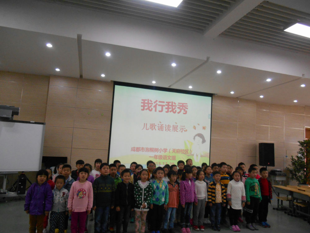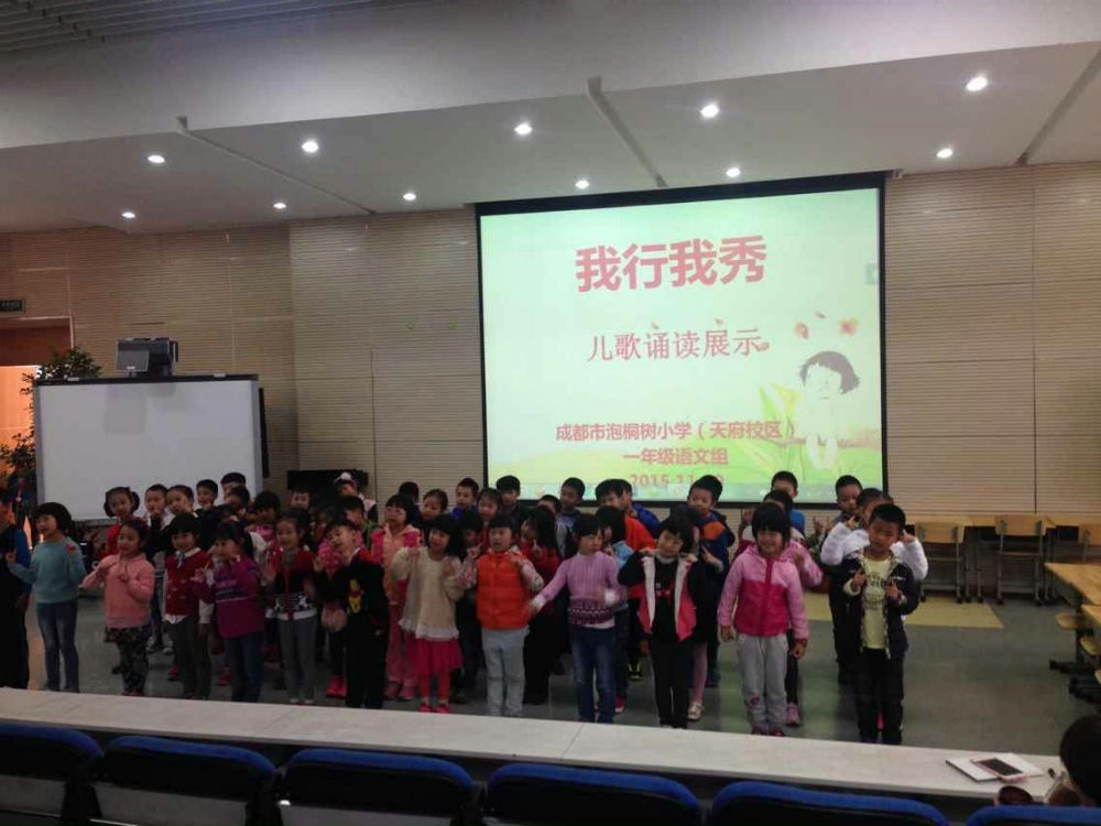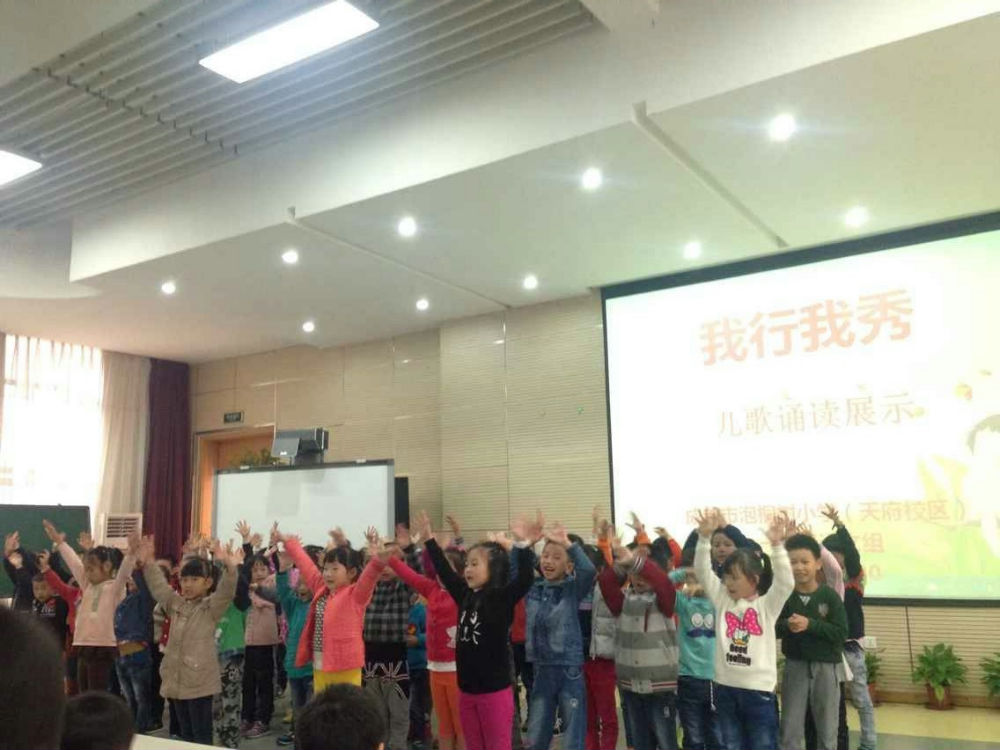 11月20日下午1点整,泡桐树小学天府校区“我行我秀”之儿歌诵读展示活动在多功能厅拉开帷幕。