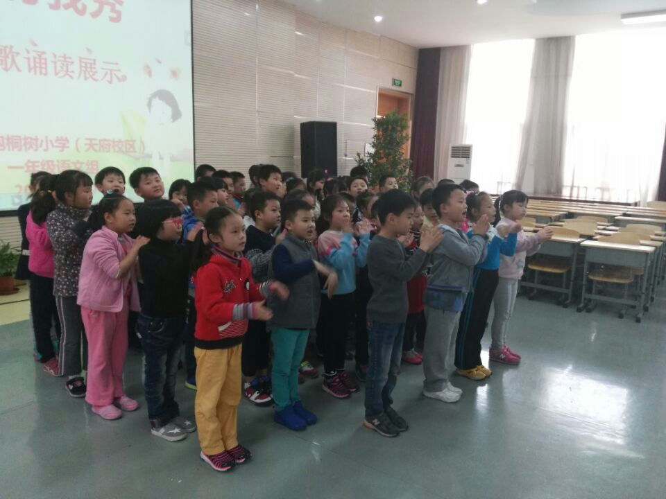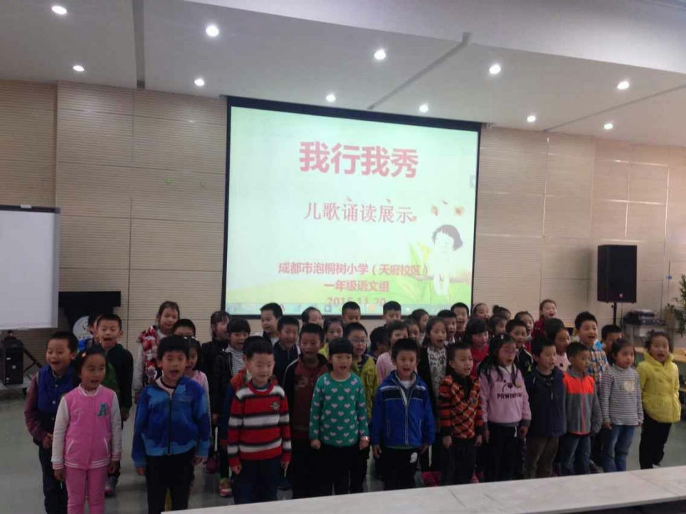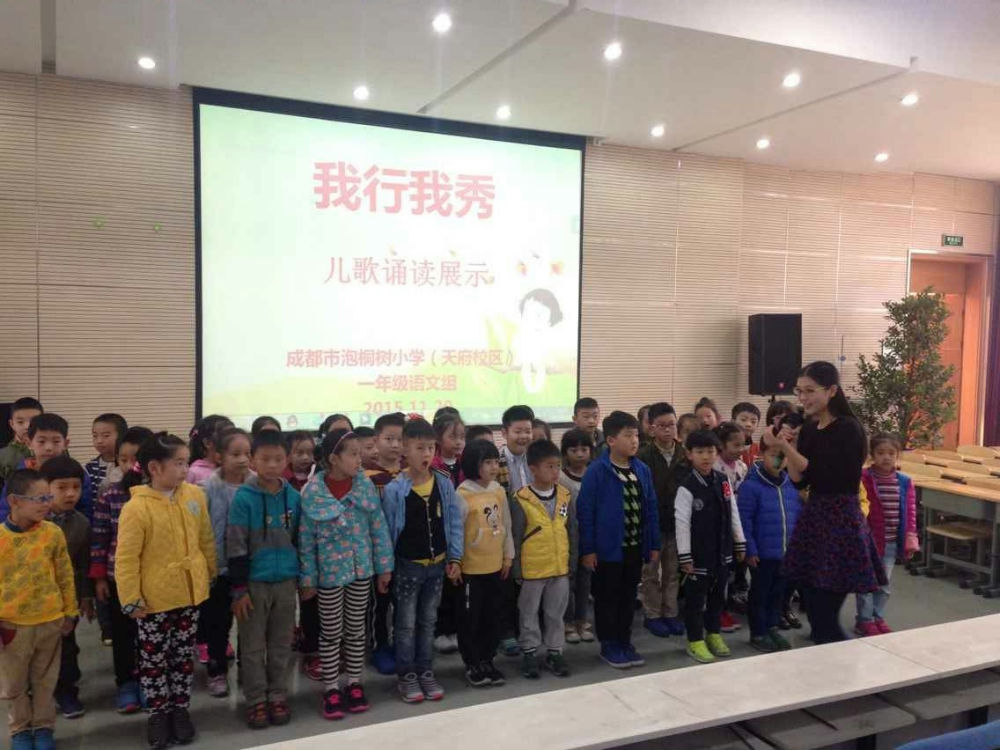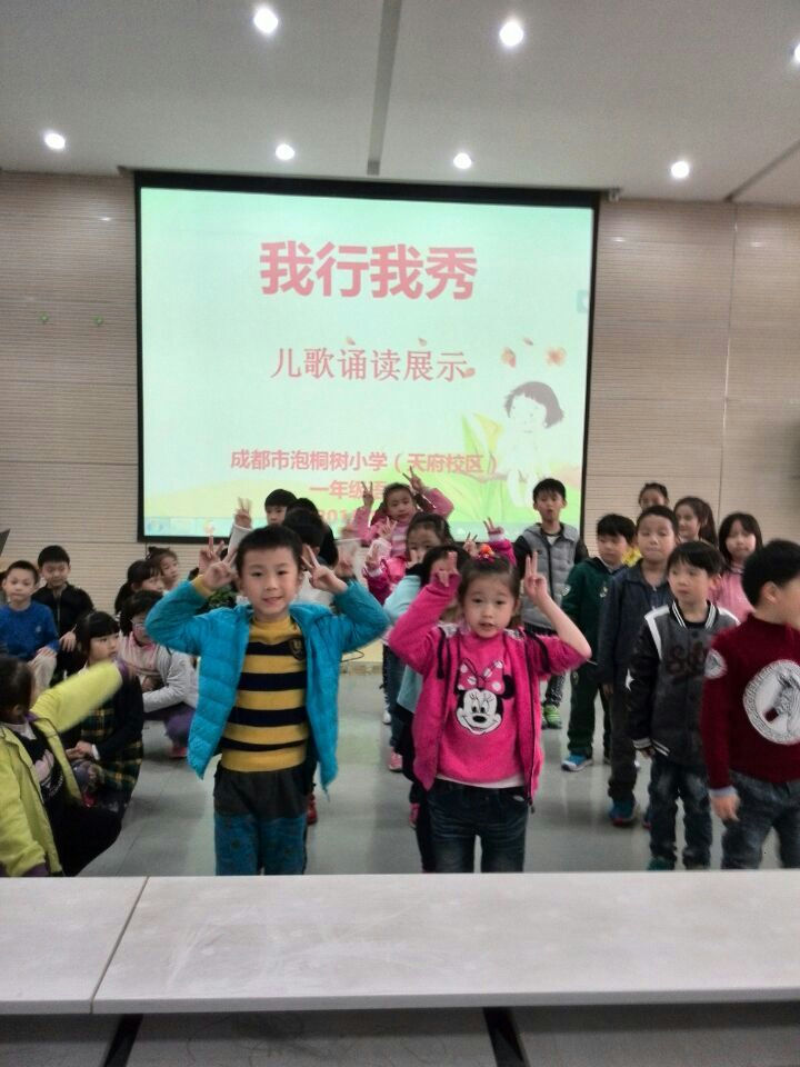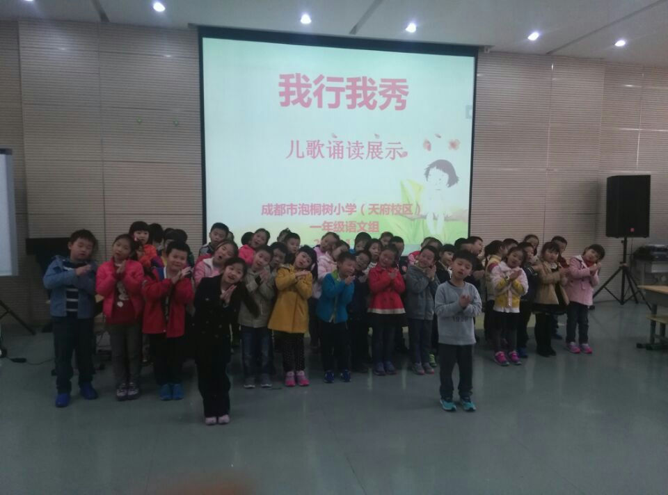11月20日下午1点整,泡桐树小学天府校区“我行我秀”之儿歌诵读展示活动在多功能厅拉开帷幕。