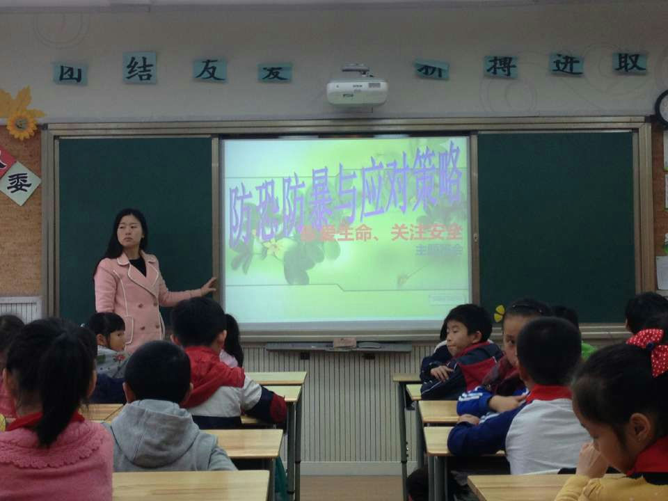 为增强全体师生防恐防暴意识,使师生掌握基本的应急处理技能,11月20日,学校组织全体学生利用班会课时间开展了防恐防暴专题教育活动。通过老师们对PPT的明确讲解,使学生们懂得了发生突发事件时要冷静、沉着应对。各班班主任引用大量的在实际生活中发生的真实案例,让学生了解恐怖袭击等突发事件给社会带来的严重影响,给民众的生命财产安全带来的巨大威胁,让学生意识到防范暴力恐怖袭击的重要性。接着,给学生播放防恐防暴警示片和教育片,片中介绍的遇暴力恐怖事件安全逃生的六字要诀“逃离、躲藏、反击”深入学生心中。学生也掌握了防范暴恐袭击和在各种情况下面对恐怖袭击时应采取的自救方法。例如,在校园及上、放学途中要注意观察,遇到陌生人时应警惕、小心应对,发现可疑人员应在保证自己安全的前提下及时告知学校及家长;发生袭击事件后应镇定,迅速找地方躲藏、报警等。