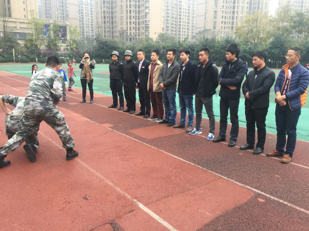 本次培训由校级家委会邀请了武警中队的战士详细讲解了面对歹徒时应当做的有效措施,并在武警战士的指导下学习部分警用装备的使用。