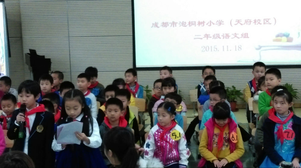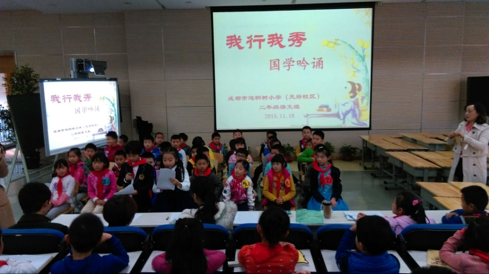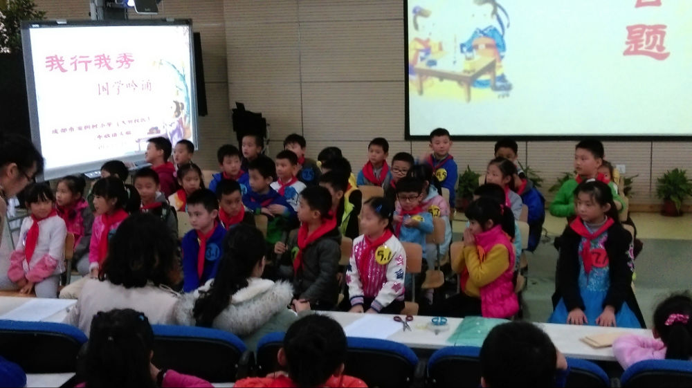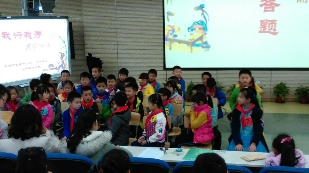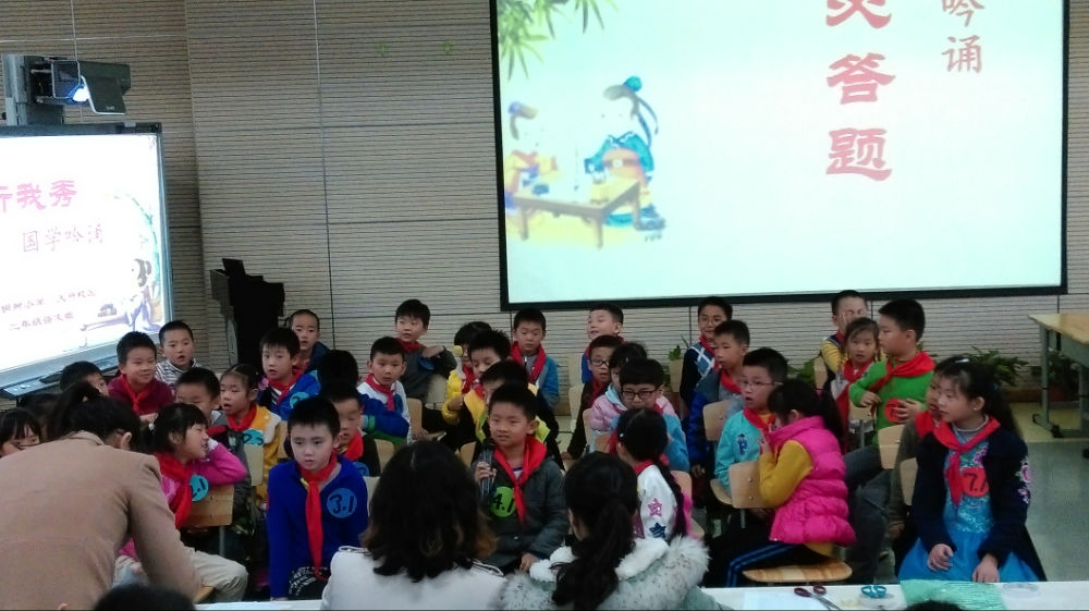 2015年11月17日,二年级语文组举办了一场“我行我秀——国学吟诵”比赛。比赛分为两个环节。第一个环节是主持人朗诵《弟子规》任意一句话的上半句,孩子回答出下半句。第二个环节则更加的精彩激烈。孩子们从《弟子规》的第一句开始,进行句句接龙。这既考验孩子平日的积累又考验孩子的临场反应。比赛中,孩子们展现出了良好的风貌,赢得在场观众的阵阵掌声。