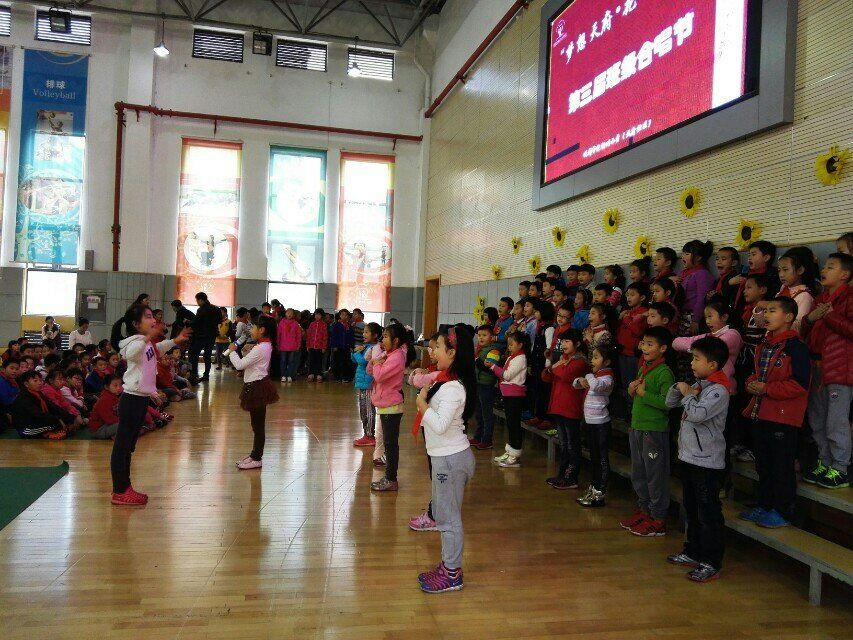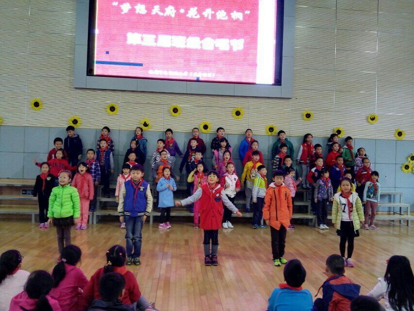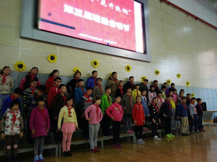 “富强民主、文明和谐,从中国到世界,自由平等、公正法治,越长久越坚持,爱国敬业、诚信友善,生长在我们心里……”豪迈、嘹亮歌声飘荡在体育馆,孩子们的笑脸洋溢着幸福、自信。2015年11月25日(本周星期三)下午13:10,准时开展了本次合唱节三四年级展示活动。