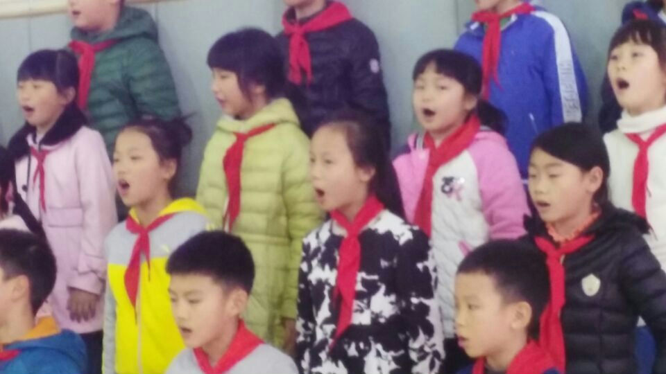 《世纪的约定》《中华人民共和国国歌》这是此次合唱节三四年级的两首必唱曲目。必唱曲目的展示形式:全年级学生站在各班方队,在各班小指挥的引导下集体歌唱。他们根据《世纪的约定》歌曲旋律和歌词,设计恰当的表演动作,动作舒展优美,声情并茂、投入积极的表演着,同时非常注意歌唱的规范科学,提眉亮眼、鼻腔翕开,小嘴张圆,养成了良好的歌唱习惯。