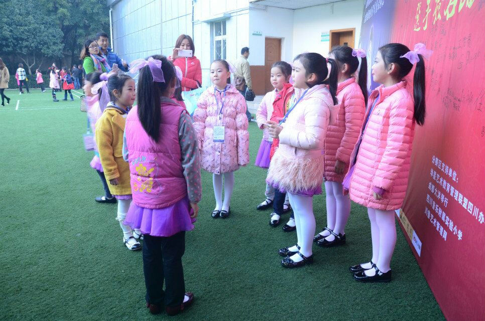 又是一个阳光明媚的周日,迎着晨曦,七彩泡泡表演唱社团的小演员们早早地就来到了川音附小的操场上,今天可是第一次参加这样的集体比赛,小朋友们既紧张又兴奋!早晨寒冷的气温也没法冻住孩子们激动的心情。为了让孩子们能真正展现实力,充分发挥,余老师带着孩子们在操场上跑步,让她们身体暖和起来,接着又开始练习发声,趁着比赛前的紧张时间,还在操场上演练了一遍,热心的家长们也互相帮着孩子们化妆,整理衣裙,拍照。