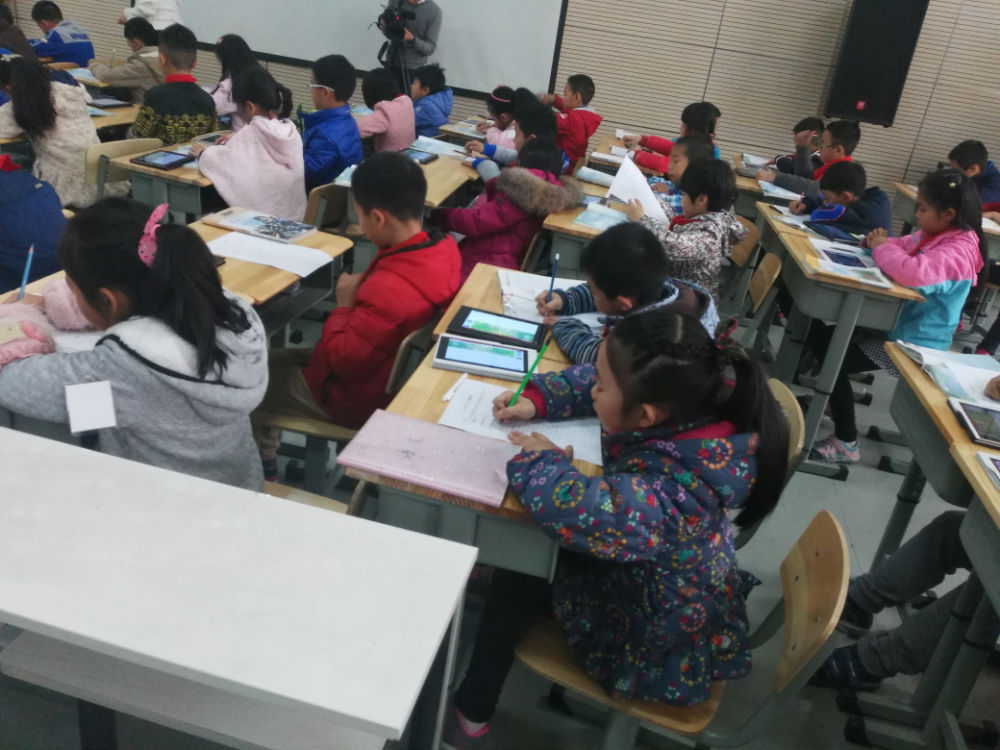傅兮老师与三九班的孩子首先为大家展示了一堂数字一对一环境下的分享式教学,课上孩子们认真讨论,积极举手,将《我想》一课上得精彩绝伦,接下来,再由周立音老师执教《生死攸关的烛光》,在这堂常规课堂教学中,周老师切实解决孩子们的真问题,让学生每课有一得。