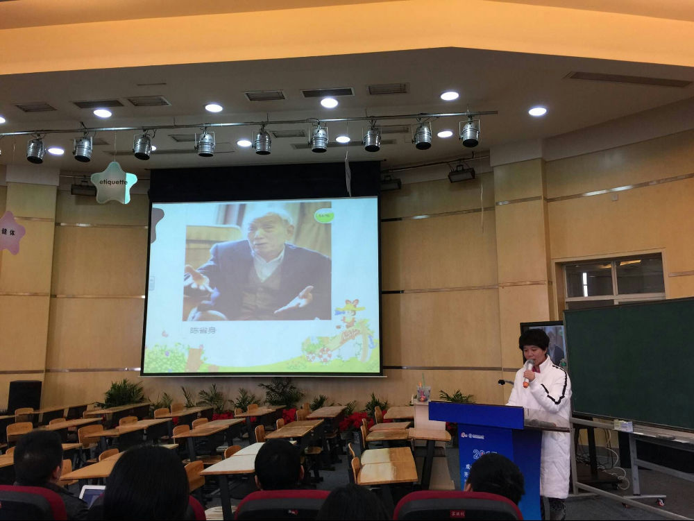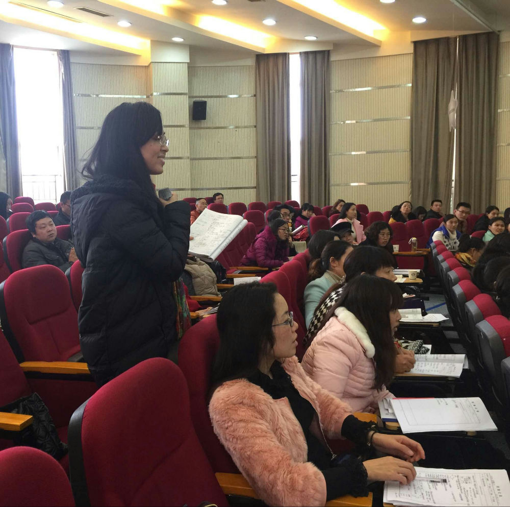 接着由我校数学教研组长宋敏老师做《漫谈“数学好玩”》的专题分享。宋老师按照“缘起困惑——初尝数学好玩——数学好玩的内涵——反思践行(树立大课程观)——一起感受数学好玩”的框架,向老师们展示了我们对数学好玩的认识、思考与做法。宋老师用清丽的嗓音、文雅的气质、生动的案例让我们感受到“数学好玩”,尤其是最后宋老师用两个隐含数学原理的故事启发,带动大家一起来感受数学的魅力。