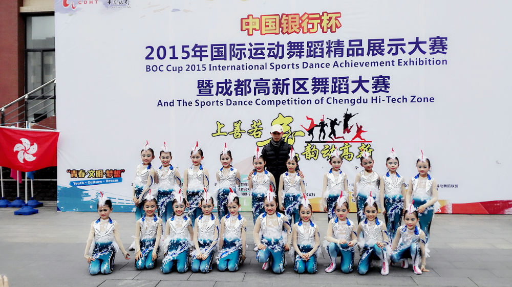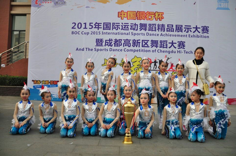 2015年11月29日,我校水泡泡舞团在2015年国际运动舞蹈精品展示大赛暨成都高新区舞蹈大赛上荣获“ 2015国际学生运动舞蹈教育成果展演金奖”。我校舞蹈教育获得IDSU国际运动舞蹈联盟肯定。由成都高新区党工委管委会、联合国教科文组织(北京)协会主办,由IDSU国际运动舞蹈联盟专业支持的2015年国际运动舞蹈精品展示大赛暨成都高新区舞蹈大赛11月27日至29日在电子科大举行。本次大赛吸引了中国、美国、英国、荷兰、俄罗斯、西班牙、泰国、香港等17个国家和地区的350多支队伍,近4000名选手的热情参与。秉承“运动健康、舞蹈快乐”的人文理念,各参赛队伍都呈现出蓬勃的活力和高昂的斗志。我校水泡泡舞团凭借刚刚从四川电视节上载誉归来的舞蹈作品《鹊之灵》征服了评委和观众,荣获“2015国际学生运动舞蹈教育成果展演金奖”。 IDSU国际运动舞蹈联盟官员高度评价了水泡泡舞团小演员们的精彩表演,同时也对我校舞蹈教育给予了肯定。